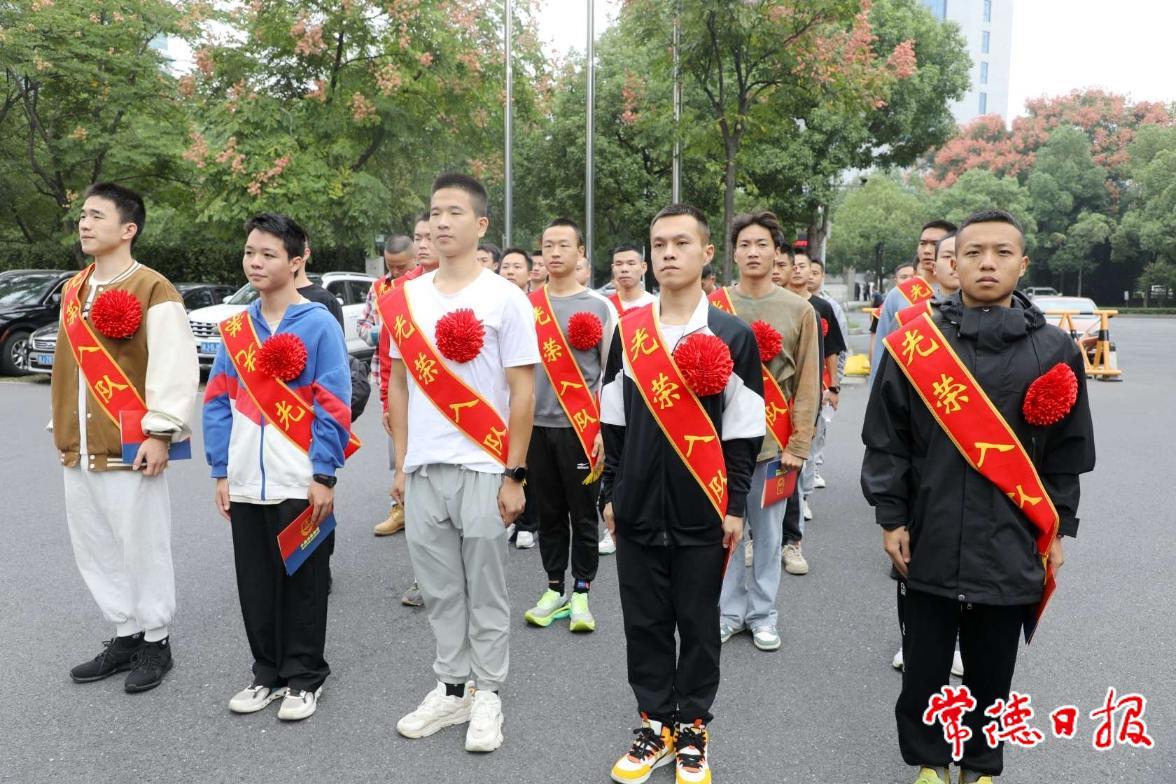 新招录消防员胸戴大红花,肩披“光荣入队”绶带