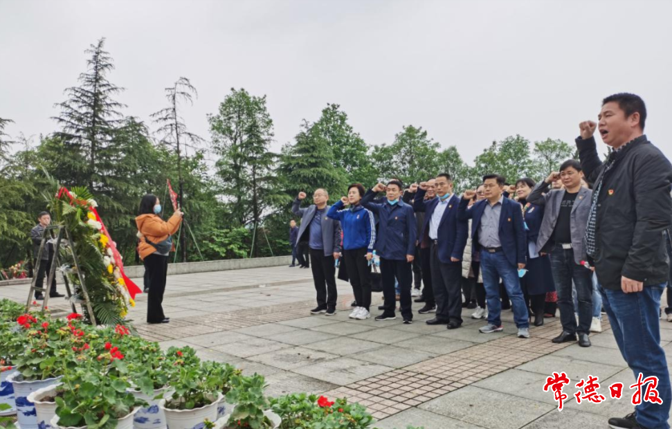 在林伯渠铜像广场前,全体人员向林伯渠铜像三鞠躬,寄托对革命家的深切哀思,并举行了庄严肃穆的重温入党誓词仪式。