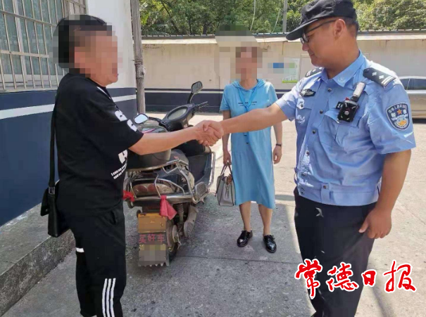 受害人周女士和丈夫来到常德快警三大队办理交接手续后,领回了被盗的电动车。