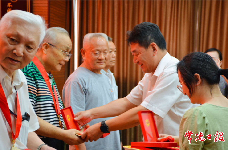 会议通报了市直工委及局系统“两优一先”表彰名单,为“两优一先”对象颁发了奖牌、证书。8名“光荣在党50年” 老党员老干部代表走上前台戴上了纪念章。老党员熊代东激动地说:“纪念章不仅体现了党和国家对我们老党员的关心、关怀和认可,也极大地增强了我们的荣誉感、归属感、使命感,这是一份沉甸甸的荣誉,我十分感恩和感动,还要继续为党的事业奋斗,为共产主义奋斗终身,做永不退休的共产党员。”