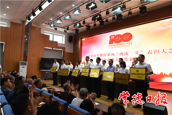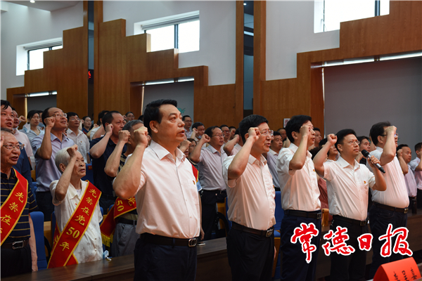 在建党100周年来临之际,市直教育系统表彰34名优秀共产党员、32名优秀党务工作者、34个基层党组织。会议现场,局机关雷子贵同志、唐必广同志,市一中黄先玲同志,市六中龚道荣同志,市三中喻冬初同志,市四中张汝英同志、侯延杰同志等7位老党员代表获颁“光荣在党50年”纪念章。