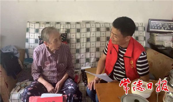 在丹阳街道北正街社区,市民政局党员志愿者来到91岁的孤寡老人温祚勋家中,陪伴她谈心聊天,并赠以慰问金。温祚勋是民政部门长期帮扶的对象,此次走访,是希望她能切实感受党和政府的关爱,能更加积极乐观地面对生活。