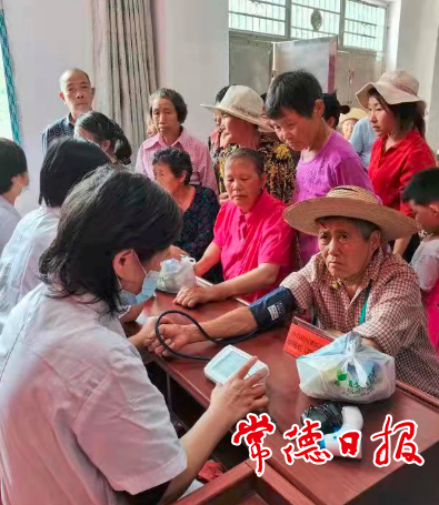 7月14日,市商务局退管处和老科协组织市妇幼保健院医学专家赴石门县雁池乡李家峪村开展送医送药下乡活动,为群众免费义诊。