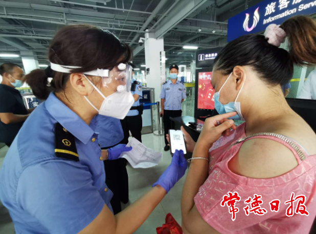 在常德火车站过渡站房,进站通道和进站口均张贴有进站乘车须持48小时内核酸检测阴性证明的紧急公告,以及查验“两码”(健康码、行程码)的温馨提示,喇叭循环播放着公告内容,便于旅客知晓。旅客们自觉戴好口罩,有序进站候车。在听取车站相关负责人的情况介绍、前往候车大厅实地查看后,督导组对车站疫情防控工作表示肯定,要求车站务必严格落实交通运输疫情防控各项措施,为旅客提供安全的出行环境。