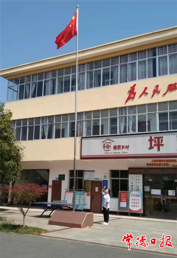 学生在公众场所有国旗的地方进行合影 图片由学校提供