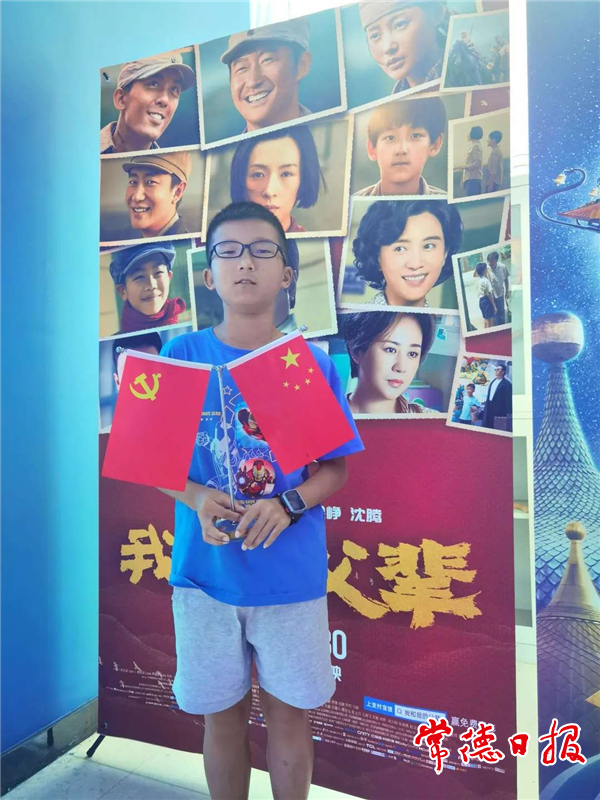 有学生选择在电影院门口手拿国旗合影 图片由学校提供