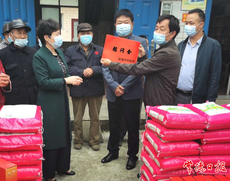 在枫树维回乡白洋河村,市民政局负责人慰问陈秋云