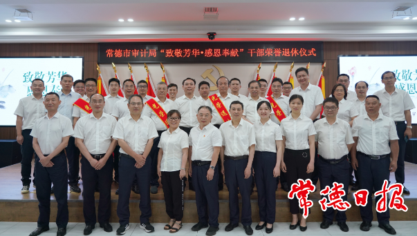 市审计局负责人向退休同志数十载奉献岗位、拼搏实干,从青丝到白发、从青葱到暮年,与常德审计同呼吸、共命运,为常德审计事业高质量发展贡献的力量表示感谢,并致以崇高敬意。他指出,开展干部荣誉退休工作,目的是让干部在退休时更加具有仪式感、归属感、荣誉感和幸福感,进一步推动离退休干部服务管理工作精细化,建立新老交替、薪火相传的审计事业传承机制具有十分重要的意义。他表示,局党组将秉持“六个一”标准,用心用情做好干部荣退工作:进行一次推心置腹的谈心谈话、颁发一份荣退纪念品、拍摄一张荣退合影、做好一次老干工作对接、共吃一顿欢送工作餐、开展一次上门走访慰问。他希望,退休同志安排好退休生活,始终保持退休不褪色、退休不退志的本色,一如既往关心、支持常德审计事业,让审计精神根脉相承、生生不息。