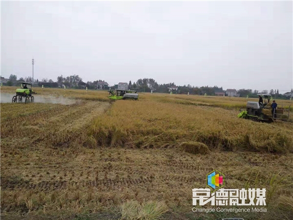 在鼎城区蒿子港镇邱家湖村举行的机收粉碎还田现场演示