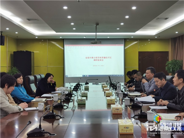 11月18日下午,省委外事办副主任邱爱华一行4人来到常德,就我市外事港澳机构设置、涉外企业经营和当前常德外事港澳工作的开展情况进行调研。市委常委、市委秘书长罗先东参加调研并讲话,常德经开区党工委书记李育智陪同调研。