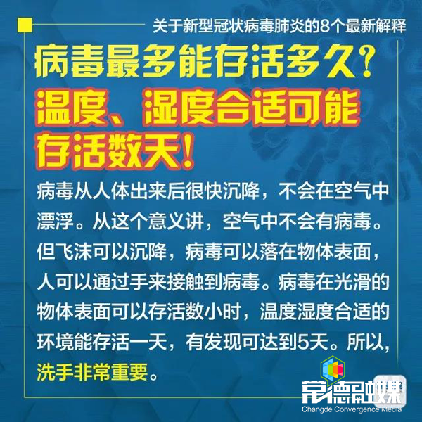 转扩!关于新型冠状病毒肺炎的8个最新解释 分享到: 打印 字体:小 大 2020-02-04 11:10 来源:常德融媒 点击次数: 次 病毒最多存活几天?能吃药预防吗?宠物与人是否会互相传染?......关于新型冠状病毒肺炎,这几个问题有最新解释!2月3日,湖北举行第十三场疫情防控例行发布会,三位国家卫健委专家组成员介绍了相关情况。中国政府网、国务院客户端带你一起看专家的最新解释——(责任编辑:孙佳欢) 【我要纠错】 责任编辑: 扫一扫在手机打开当前页