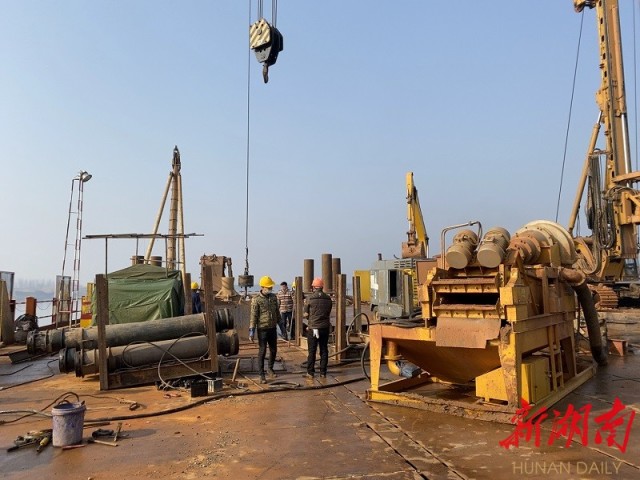 沿着栈桥往沅江江心行走,中铁三局集团常益长铁路项目部二分部副总经理冯镜源指着一个庞然大物说:“这台旋挖钻国内罕见,钻孔桩直径达2.5米,孔深达120米,单桩混凝土方量达500立方米。这样才能确保钻孔深度和成孔质量。”
