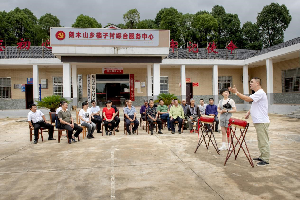 “我要加入中国共产党,高志昂在心里想……”在楼子村村部,村民们正在津津有味地听着临澧文化志愿者熊波涛、吴清华原创的鼓曲《我要入党》,今年80岁的老党员胡忠玉1965年入党,是村民致富的带头人,婉转动人的传统说唱艺术与党员故事相融合,令他激动地连续鼓掌叫好。