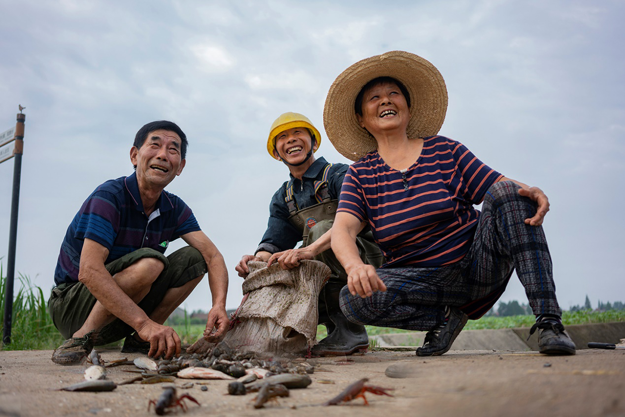 舌尖洞庭,一竿风月。今年 68 岁的刘宇青一大清早就收获满满,从小河里抓了些龙虾、鳝鱼准备一饱口福,活蹦乱跳的鱼虾满载着幸福生活的喜悦。