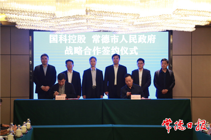 副市长汤祚国,中国科学院企业党委常委、国科控股副总经理谭遂分别代表双方签约。常德经开区党工委书记李育智、管委会主任邹如龙,市政府秘书长李正才出席签约仪式。