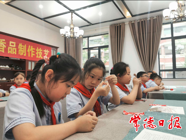 学生代表体验非遗项目香品制作技艺