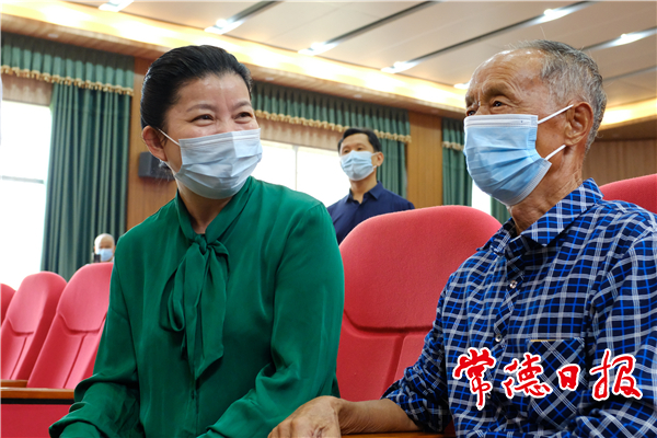 在石门县夹山镇第一投票站,余怀民与当地选民代表交流