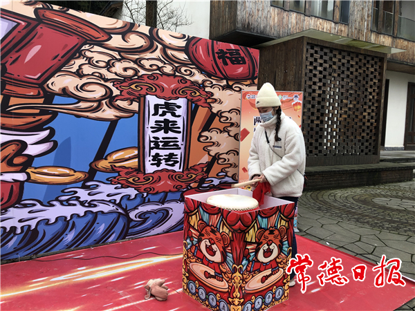 景区工作人员击鼓助兴