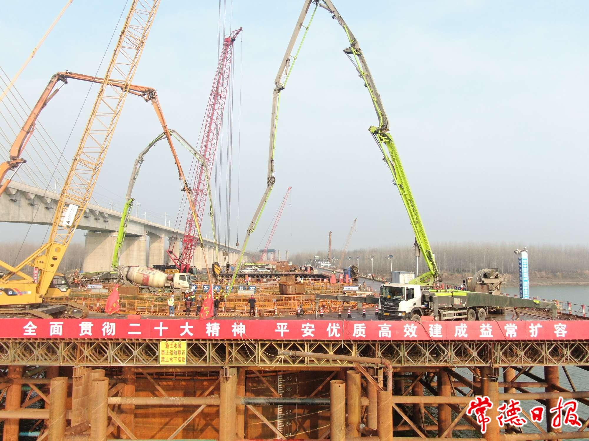 2月25日上午7时,益常高速公路扩容工程沅水特大桥建设现场热闹非凡,大桥施工重要节点——主墩钢围堰封底施工正式启动。