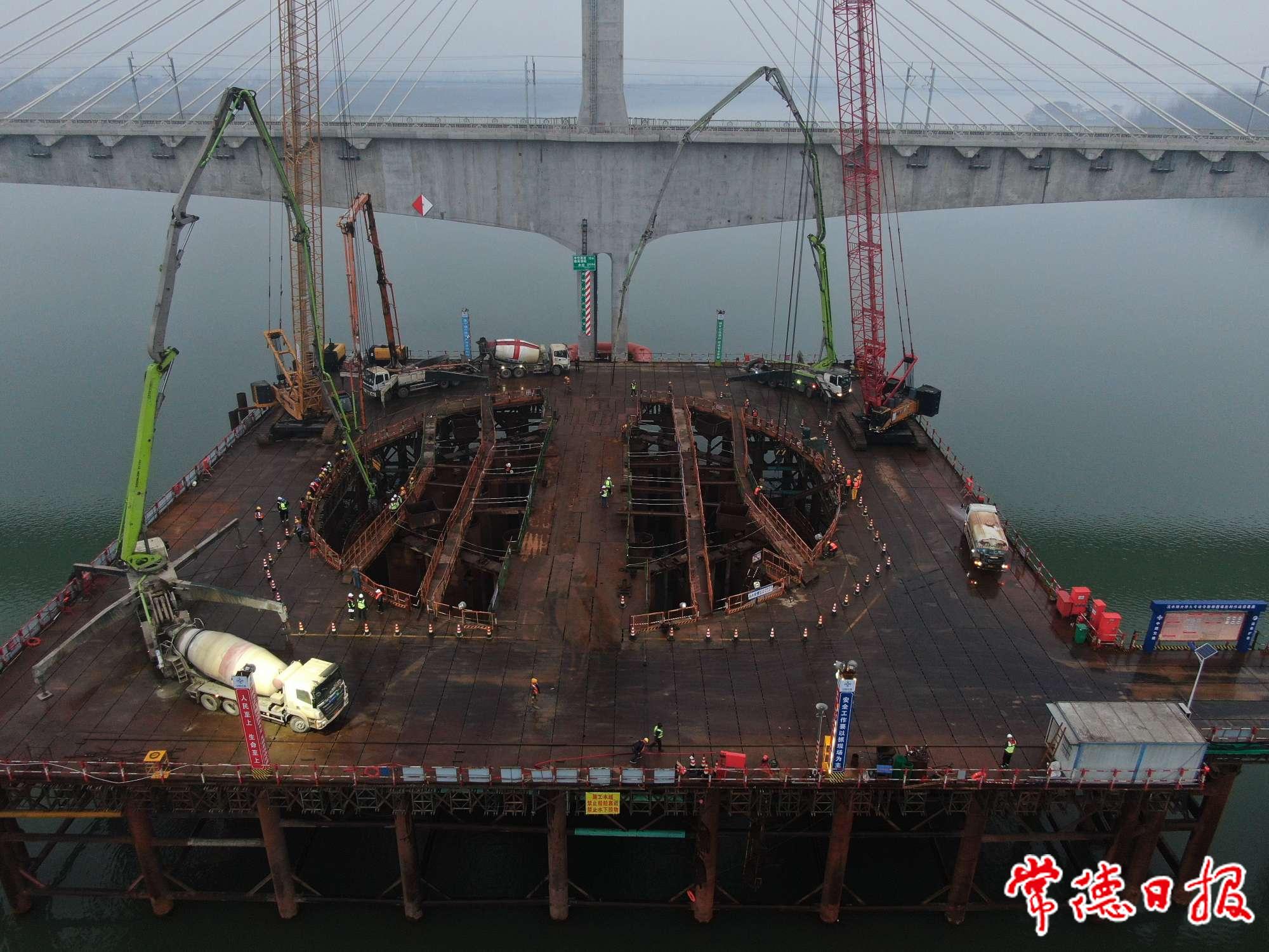 “钢围堰封底是项目部参建员工为之期盼的大事,本次封底混凝土约6000立方,需连续不断灌注60小时。”项目相关负责人介绍,“钢围堰封底,标志着沅水特大桥建设迈向新阶段,主墩施工从水下隐蔽施工转为水上可视施工,为大桥顺利建设奠定了坚实的基础,确保今年汛期前主墩出水的目标如期实现。”