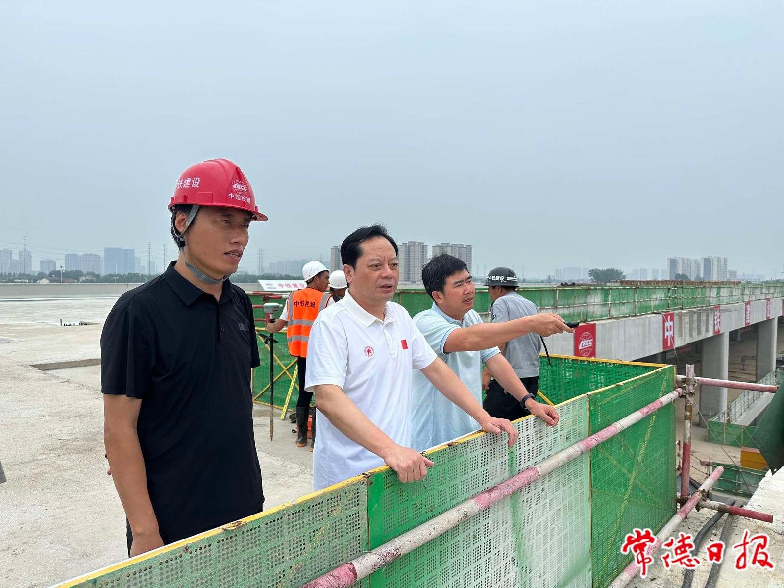6月2日,市政协副主席、党组副书记汤祚国一行来到常德火车站北站房落客平台,现场调度北站房项目建设工作。