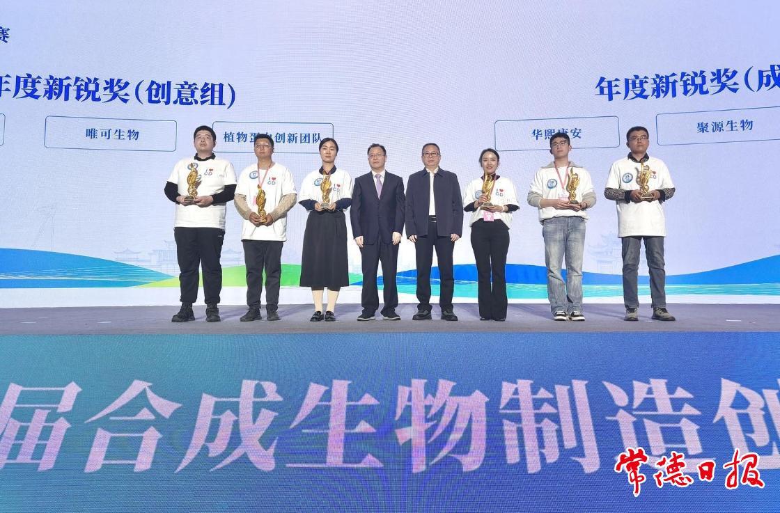 市委常委、常务副市长陈计伟作常德合成生物制造产业推介。相关市级领导参加颁奖典礼。