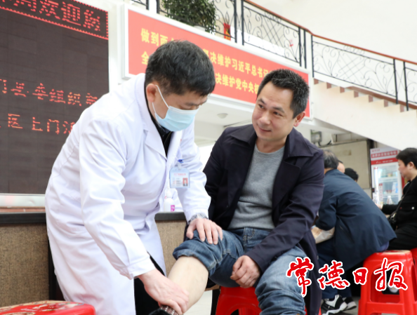 90岁的陈湘老人在家人的搀扶下来到了现场,老人曾因脑卒中住院治疗,治愈出院后,留下了腿脚不便,说话含糊、流口水的后遗症。湘雅常德医院神经内科主任周文斌仔细了解老人病情,开具药方,并耐心叮嘱老人注意事项。