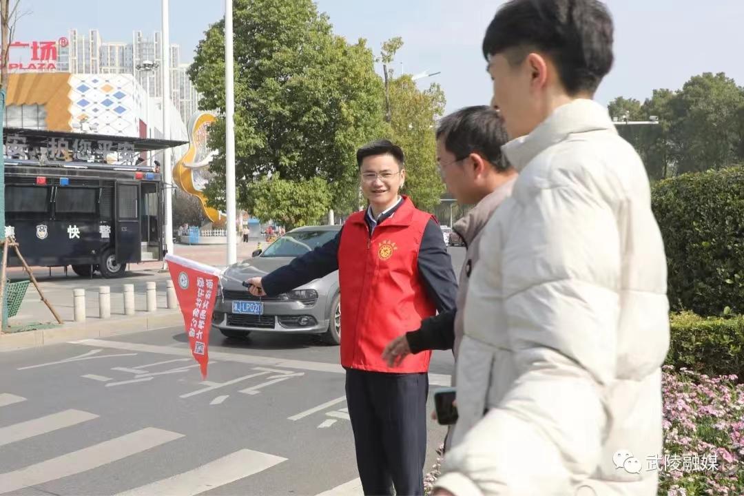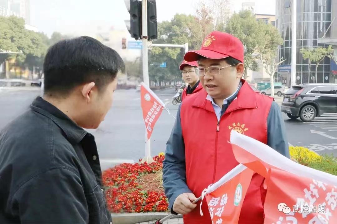 武陵区全体区级领导与300多名志愿者共同参与文明交通劝导