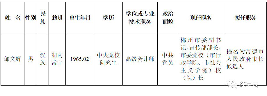 省委管理干部任前公示 邹文辉拟提名为十大彩票网赌平台长候选人