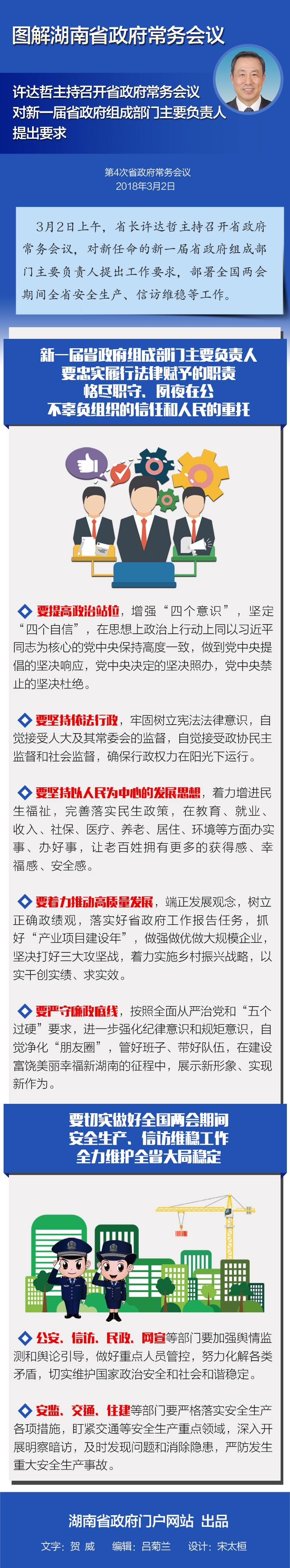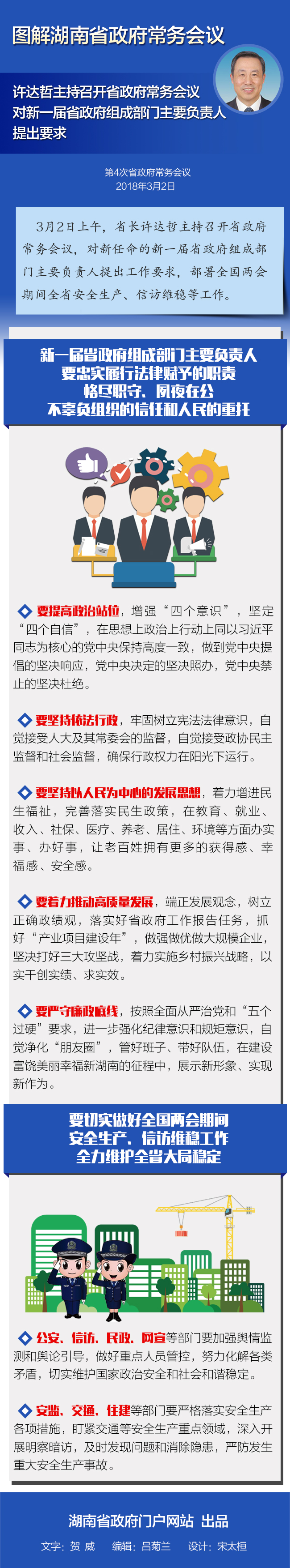 【图解】3月2日湖南省政府常务会议:对新一届省政府组成部门主要负责人提出要求 分享到: 打印 字体:小 大 2018-03-03 10:49 来源:湖南省人民政府门户网站 点击次数: 次 【我要纠错】 责任编辑: 扫一扫在手机打开当前页