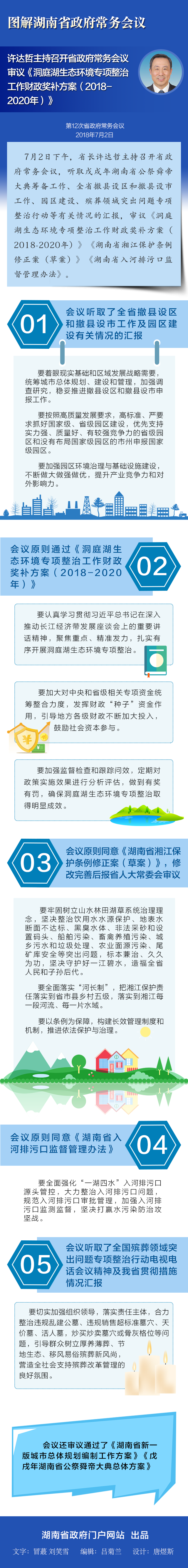 【图解】7月2日湖南省政府常务会议:审议《洞庭湖生态环境专项整治工作财政奖补方案(2018-2020年)》_省网转载_最火的网络彩票平台推荐_十大彩票网赌平台门户网站