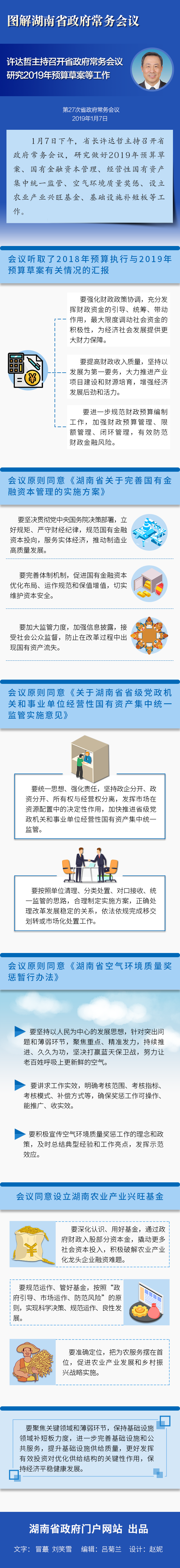 【图解】1月7日湖南省政府常务会议:研究2019年预算草案等工作 分享到: 打印 字体:小 大 2019-01-08 16:12 来源:湖南省人民政府门户网站 点击次数: 次 【我要纠错】 责任编辑: 扫一扫在手机打开当前页