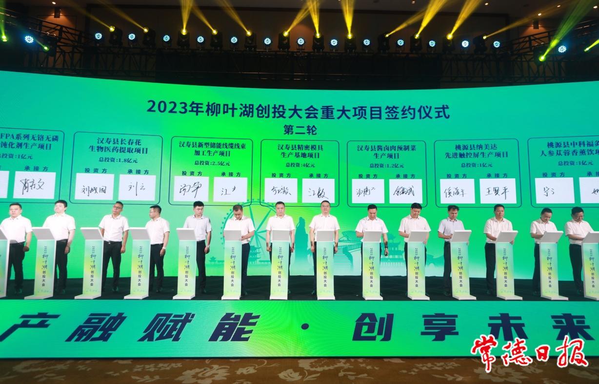 6月20日,“产融赋能 创享未来”2023柳叶湖创投大会举行,来自全国各地的行业大咖、投资人、创投机构负责人与企业家代表等共聚常德,共话创新创业、共商产融赋能、共促合作发展。市委书记曹志强出席大会并致辞。市委副书记、市长周振宇作“常德未来发展新蓝图”主题推介。此次大会共签约52个项目,总投资额157.08亿元。
