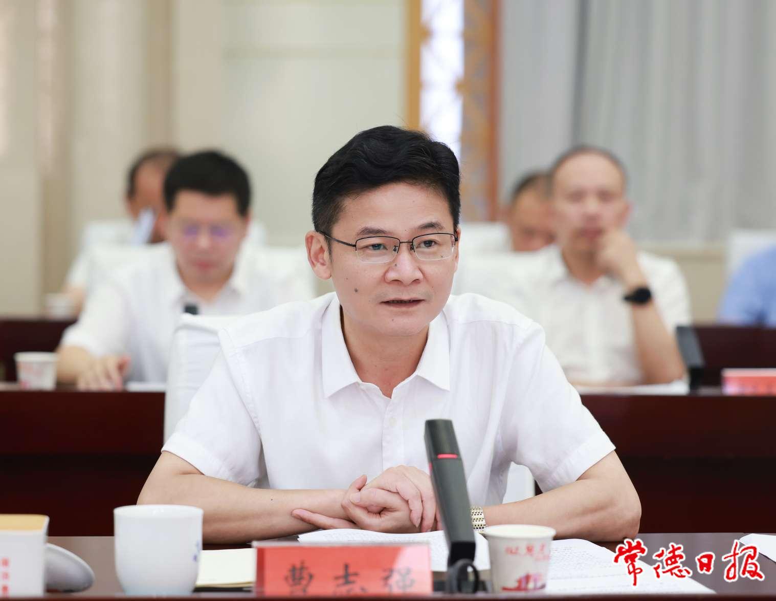 6月27日,市委书记曹志强,市委副书记、市长周振宇与来常考察的深圳港集团有限公司(以下简称“深圳港集团”)党委书记、董事长胡朝阳一行座谈,就深化双方合作、加强常德港建设进行深入交流。