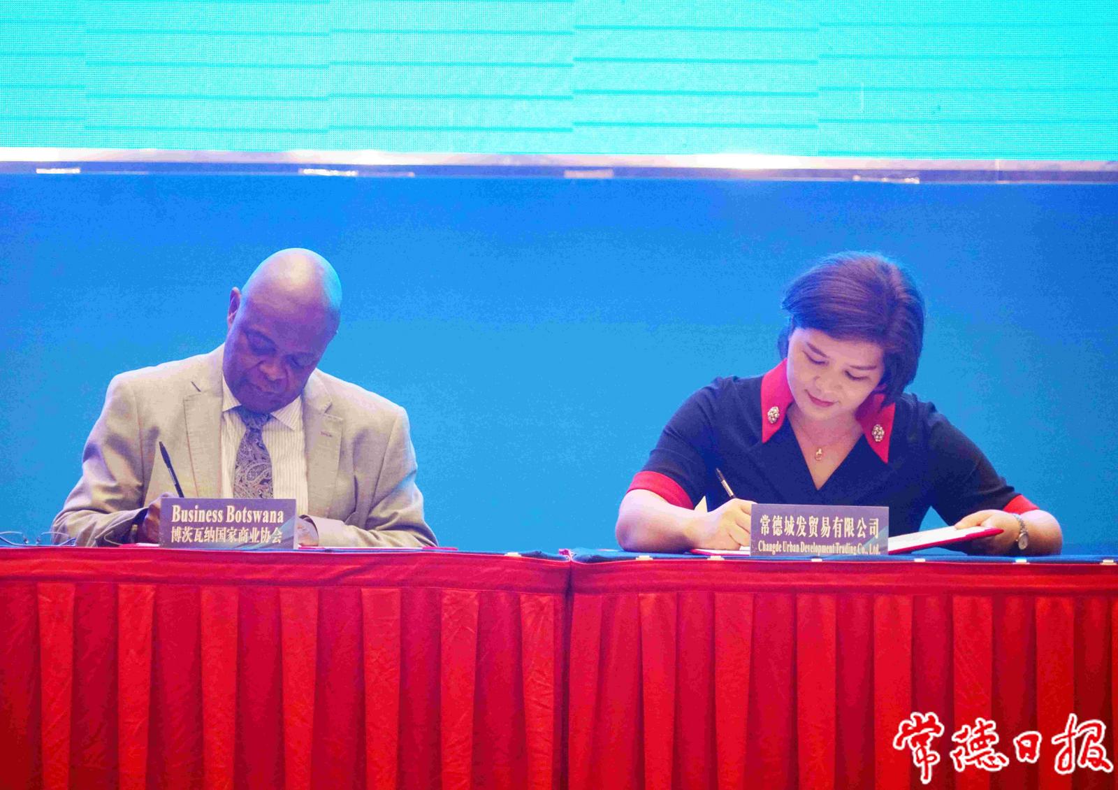 博茨瓦纳国家商会代表与常德城发贸易公司代表签订合作备忘录