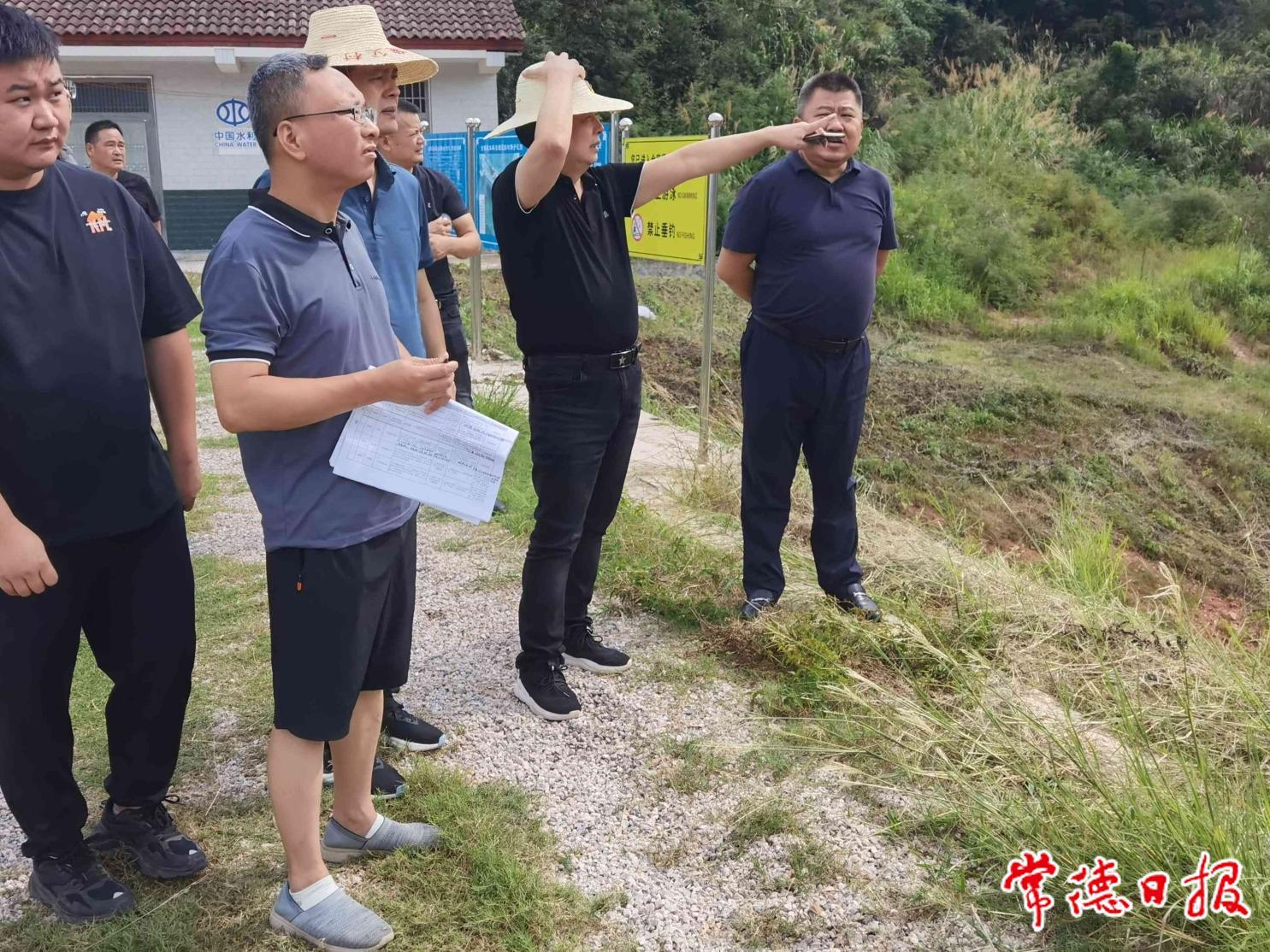 核查组在临澧县停弦渡镇杉板桥社区金家堰水库现场查看