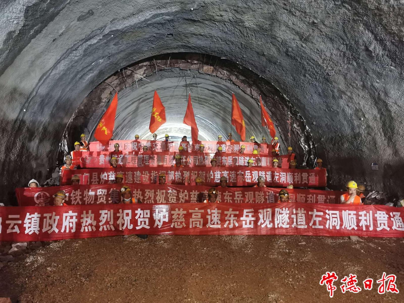 东岳观隧道是炉慈高速公路唯一一条低瓦斯隧道,它的贯通对加强常德与张家界两市的沟通交流、促进湘西北地区经济社会发展具有重大意义。