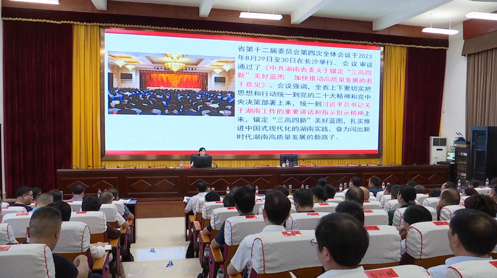 刘艺以“学习贯彻习近平总书记对湖南重要讲话和重要指示批示精神”为主题,从“深刻把握丰富内涵、深入领悟重大意义、切实抓好贯彻落实”3个方面,全面系统地解读了党的十八大以来习近平总书记对湖南工作的重要讲话重要指示批示精神。围绕如何实干笃行、抓好贯彻落实,刘艺表示,要着力打造“三个高地”,推动高质量发展;要大力推进乡村振兴战略,加快建设农业强省;要大力推进美丽湖南建设,坚决扛牢“守护好一江碧水”的责任担当;要坚持以人民为中心,着力改善民生和维护社会稳定;要立足湖湘文化底蕴和优势,加快建设文化强省;要加强基层基础工作,提高基层治理能力;要传承红色基因,凝聚砥砺奋进的磅礴力量;要强化人才支撑,开创人才强省新局面。