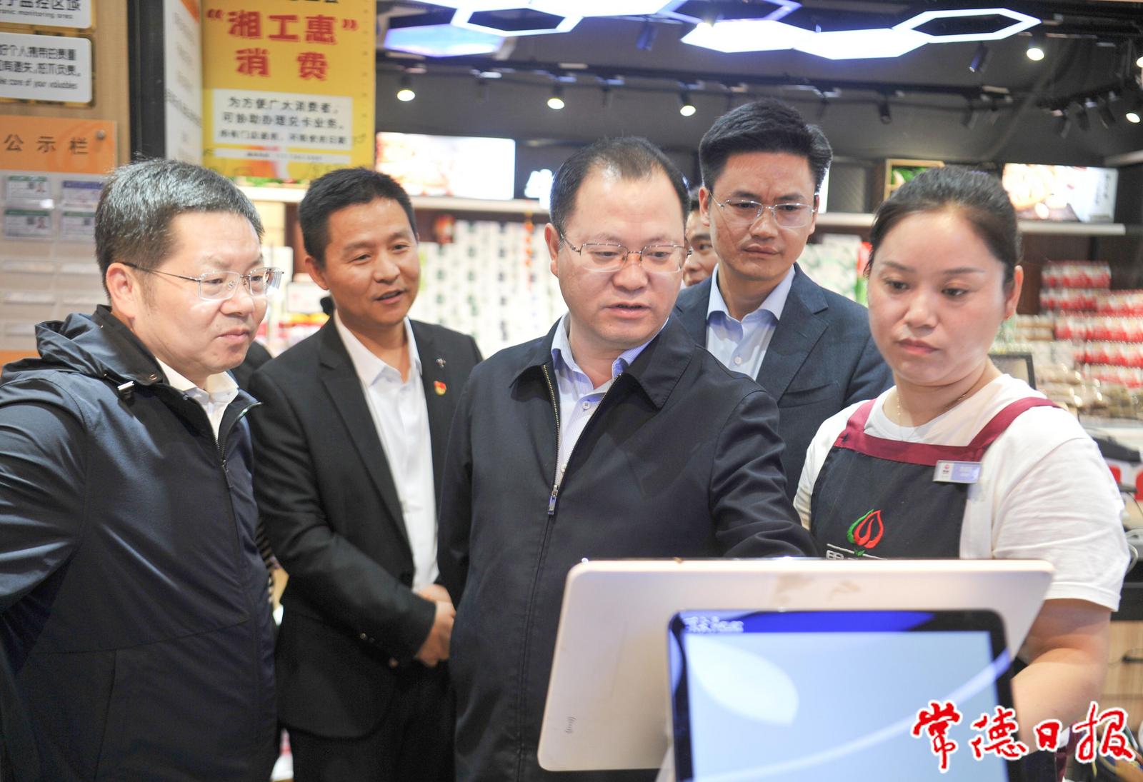 周振宇一行来到常德丰彩好润佳商贸有限公司、武陵区果市多水果店朝阳时光店、湖南库珀健康产业有限公司,了解经济普查有关情况。