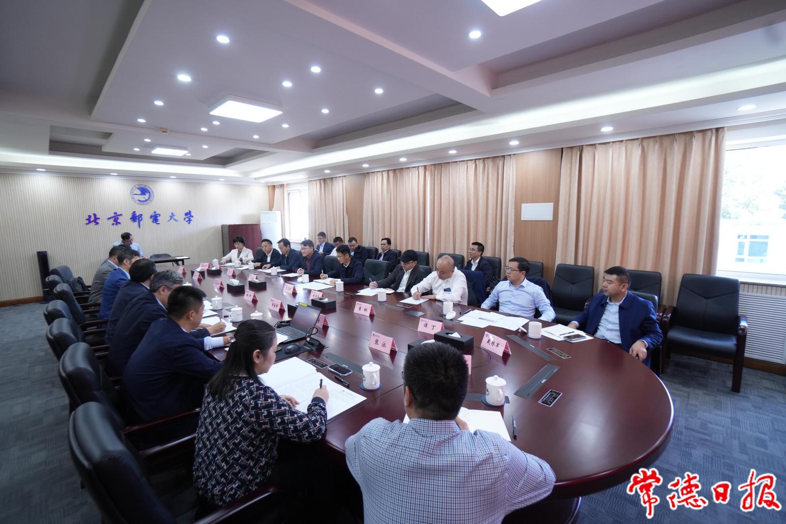 在北京邮电大学,曹志强一行参观考察了网络与交换技术、信息光子学与光通信两个全国重点实验室,并与北京邮电大学校长徐坤座谈交流,希望进一步深化创新领域合作,推动更多创新平台在常德布局、科研成果在常德转化、科创人才在常德发展,帮助常德在科技创新领域实现更大突破。徐坤表示,将搭建政校沟通交流平台,共建人才培养教育基地,实现双方资源共享、优势互补、相互促进,助力地方经济高质量发展。