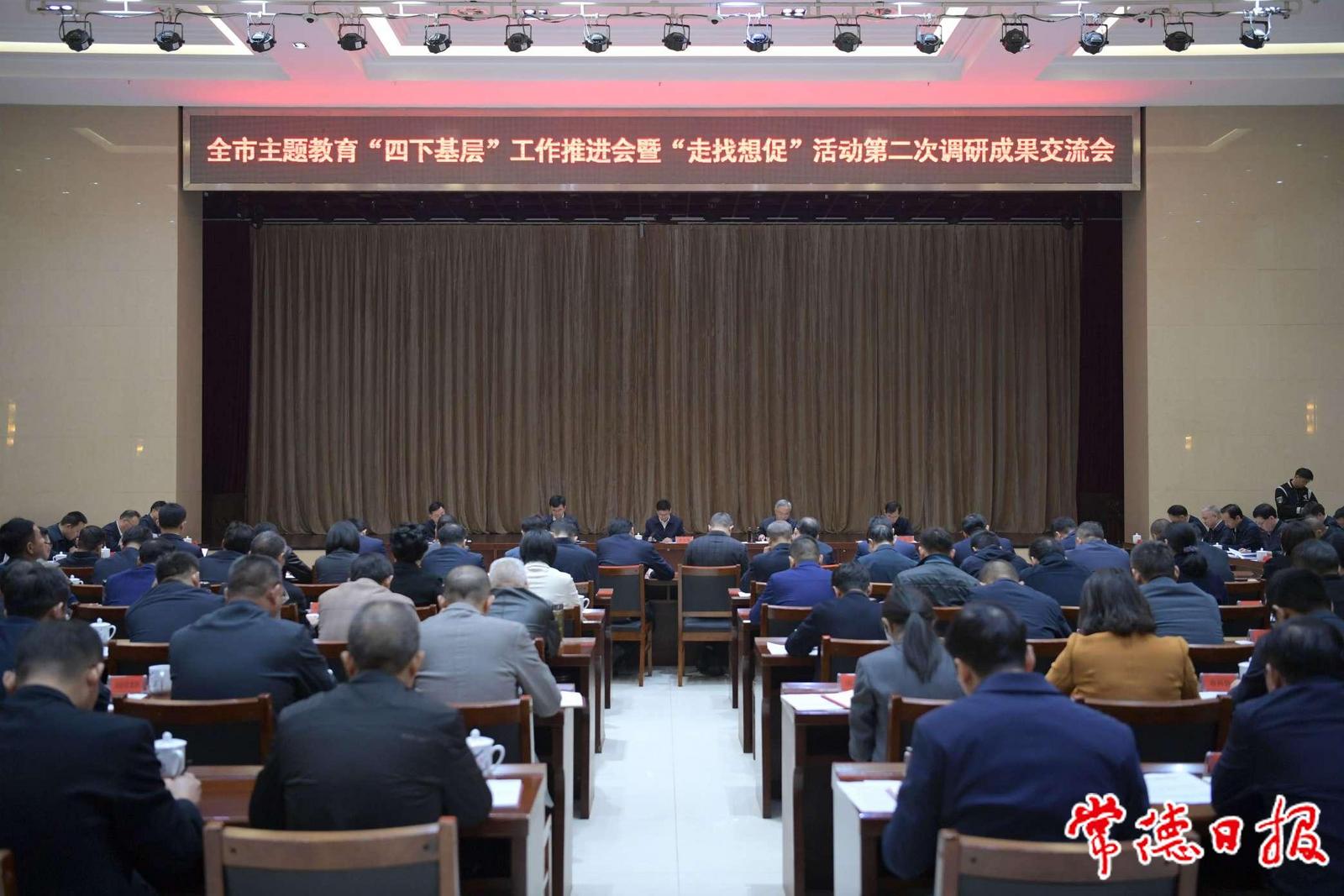 会上,市委常委、市委组织部部长康重文传达学习了习近平总书记关于主题教育最新重要讲话精神和中央、省委有关文件会议精神,汇报了我市主题教育开展情况和下一步工作建议。市委宣传部、市自然资源和规划局、市信访局,以及武陵区、鼎城区、汉寿县、桃源县、临澧县、石门县、澧县、安乡县、津市市、西洞庭管理区主要负责同志围绕落实“四下基层”制度和开展“走找想促”活动情况作交流发言。