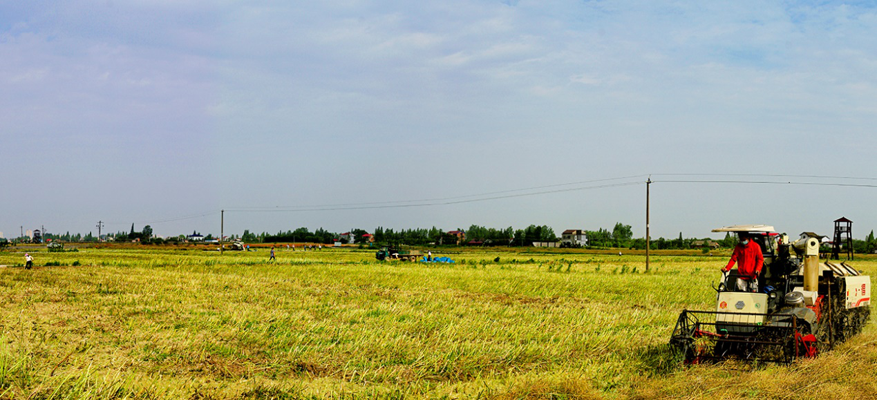 全村机械大收割,油菜地里话丰年。