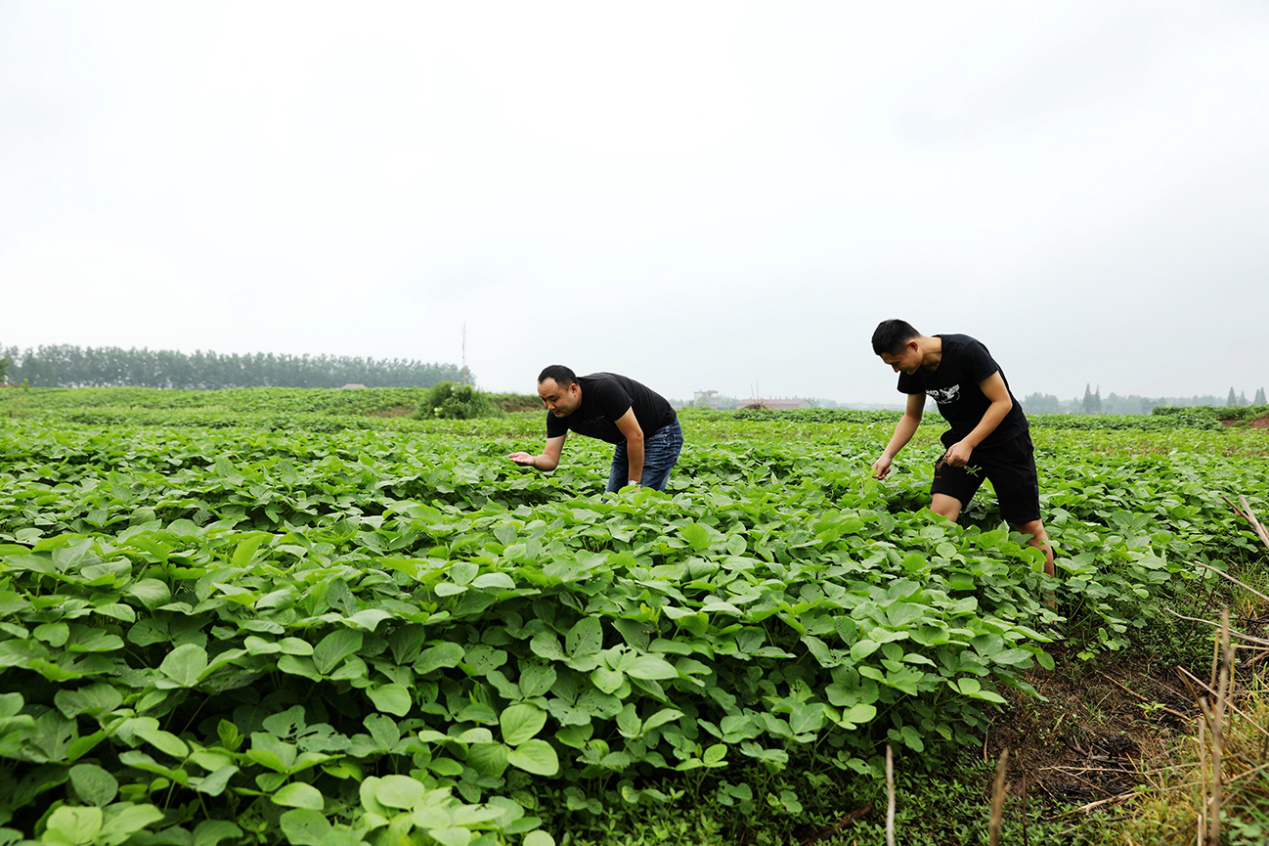 用心用情帮扶让温暖直抵人心。最火的网络彩票平台推荐民政局驻村帮扶工作队队员李俊和李刚来到脱贫户陈立文的40亩黄豆地里了解种植情况。