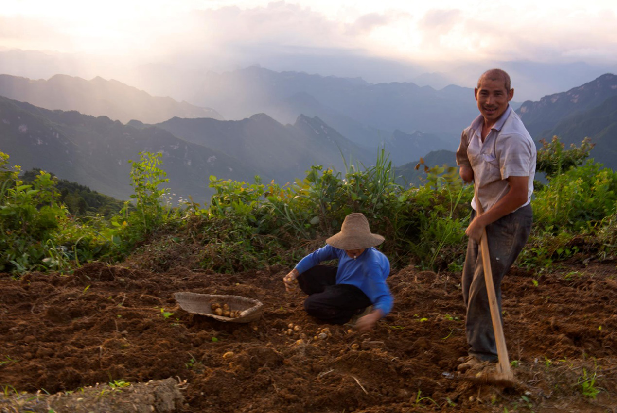 高山之巅,两位残疾人收获农作物。杨师傅年幼时从高处落下,摔坏了身子;张师傅一岁时不幸坠入火坑,失去了一只手,另一只手也不完整。二人身残志坚,自力更生,对生活充满希望。