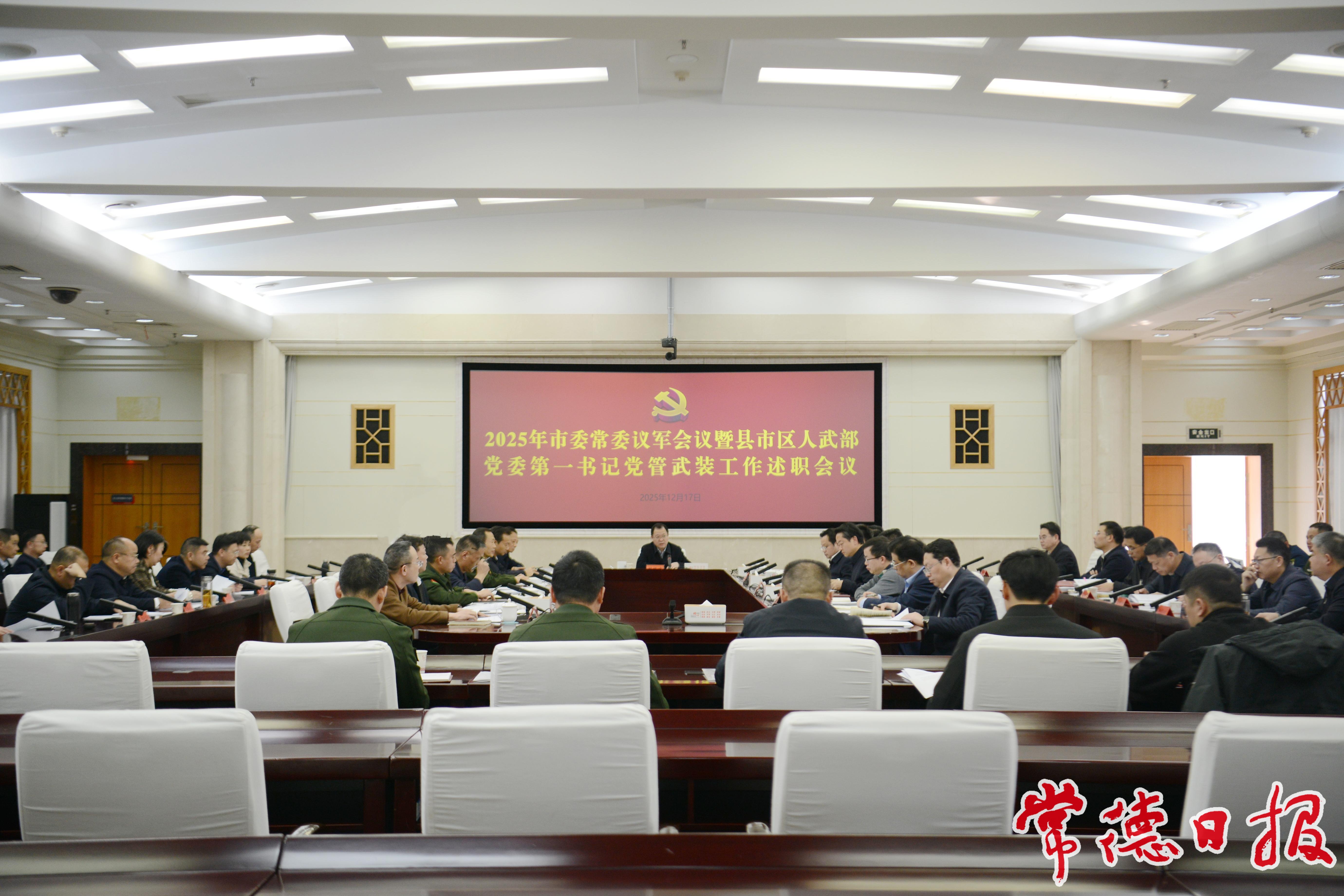 12月17日,受市委书记、常德军分区党委第一书记罗毅君委托,市委副书记、市长、市国动委主任周振宇主持召开2025年市委常委议军会议暨县市区人武部党委第一书记党管武装工作述职会议,传达学习习近平总书记关于国防和军队建设重要论述,听取有关情况汇报和县市区党管武装工作书面述职,研究安排下阶段工作。