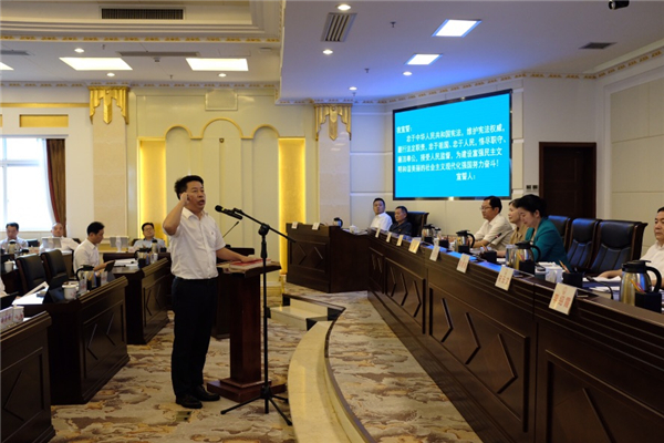 会议还审议表决了有关人事事项。会议经表决通过,决定任命市委常委、市纪委书记何艺辉为市监察委副主任,决定何艺辉副主任为市监察委代理主任;决定任命余良勇为市人民政府副市长、市公安局局长。会上,还举行了国家机关工作人员宪法宣誓仪式。