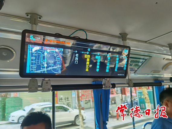 5路智能网联公交车上的智能联网屏幕,清晰显示公交线路运行情况,方便乘客了解相关信息