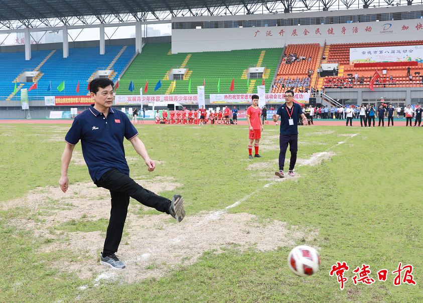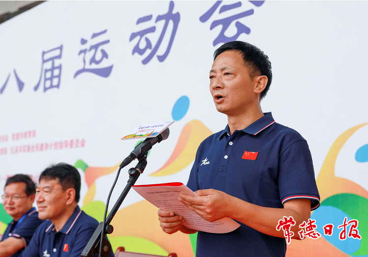 开幕式现场,嘹亮的国歌响彻体育场。黄清宇致开幕词,他说,本届市运会既是对常德体育水平的大检阅,也是常德人民精神风貌的大展示。全市上下要乘八运会举办机遇,大力发展群众体育、竞技体育和体育产业,让常德动起来,让全民动起来,以更加强健的体魄,更加饱满的热情,更加高昂的斗志,积极投身改革发展伟大事业,为建设现代新常德贡献更大力量。本次市运会红色火种接力跑活动先后在9个区县(市)及市直5区传递,共有105名优秀共产党员火炬手接力传递。红色火种接力跑最后一棒火炬手,世界蹦床锦标赛金牌获得者杨玉洁点燃市第八届运动会火炬主火台。开幕式后,进行了成年组足球决赛。