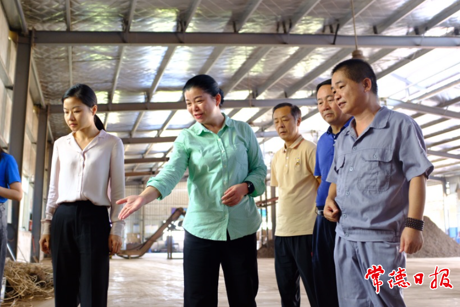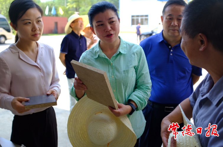 当日上午,余怀民一行来到安乡汉创新科技有限公司。该公司2019年7月由中国地质大学(武汉)杨峥嵘博士创立,主要从事新材料及清洁能源研究和制造。其主打是以秸秆特别是芦苇芦竹等植物的农林固废为主要原材料,生产秸秆定向刨花板、生物质燃料等产品。据介绍,该秸秆定向刨花板是生物质固碳的创新实践;并且其生产中,运用淀粉基生物树脂和秸秆刨片工艺,无醛无苯。该产品先后获得中国创新创业大赛国家优胜奖、湖南省循环经济科技进步二等奖等荣誉。该公司落户安乡后,已建成投产了两个中试工厂。目前,该公司正在筹建省级工程技术研发中心。