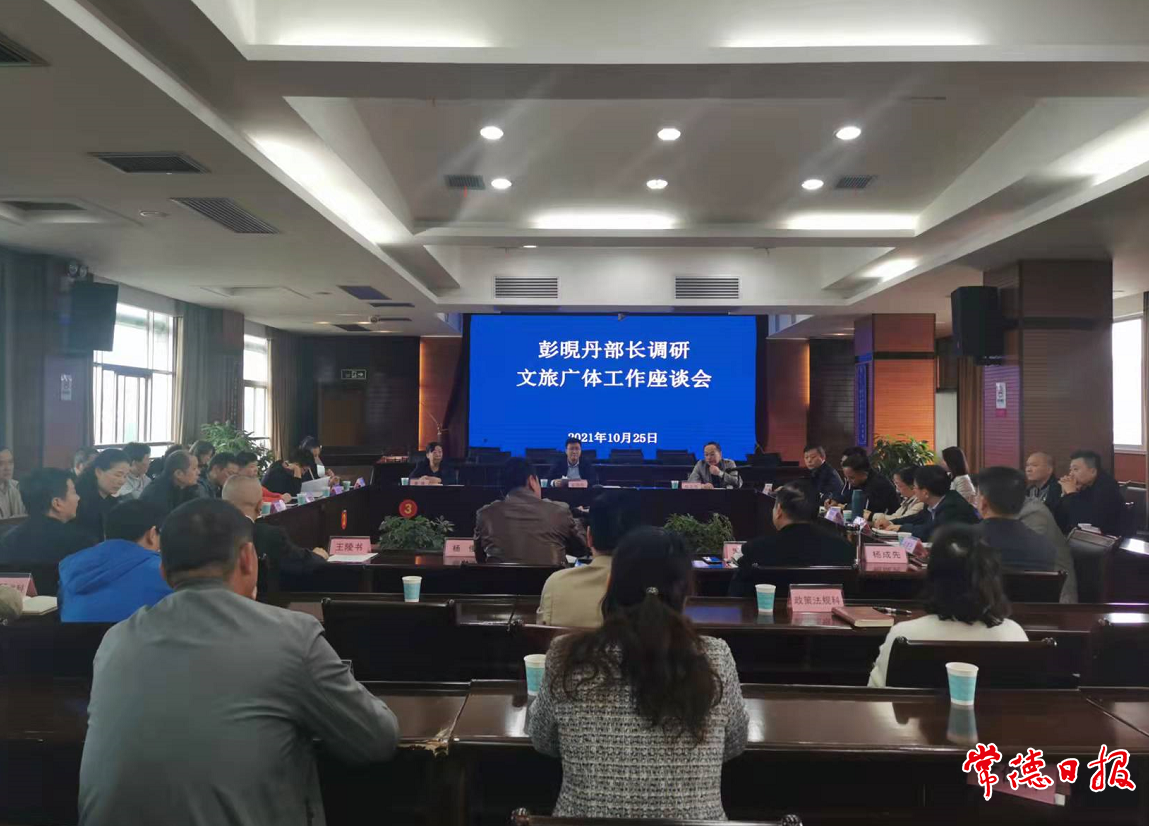 座谈会上,彭晛丹充分肯定了近年来市文旅广体局在公共文化服务体系建设、文化遗产保护与传承、文旅产业融合发展、文化市场管理等方面所取得的成绩,认为常德有文旅资源的先天优势和文旅产业的坚实基础,后劲足、潜力大。就如何推动全市文旅广体事业高质量发展,彭晛丹指出,要增强文旅产业发展实力,深入挖掘常德文旅资源“富矿”,做好文化旅游融合发展这篇“大文章”;要激发文艺精品创作活力,紧扣新的历史方位和时代坐标,深入生活、扎根人民,推出一批思想精深、艺术精湛、制作精良的优秀作品;要提升公共文化服务能力,积极推进公共文化服务体系建设,深入实施文化惠民工程,丰富群众精神文化生活;要建强文旅广体队伍主力,引进一批文化、旅游领军人物和高端人才,努力打造一支政治过硬、本领高强、求实创新、能打胜仗的干部队伍。
